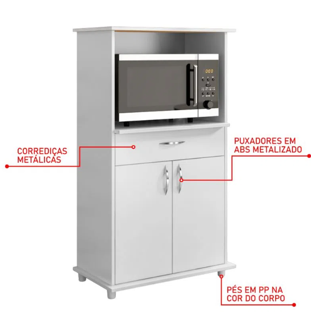 O balcão 3070 2 Portas 1 Gaveta Branco, vai manter sua cozinha organizada sem perder o estilo! Tem 2 portas para guardar seus utensílios de cozinha, possui 1 gaveta com corrediças metálicas, fazendo com que você tenha uma melhor organização em sua cozinha. Possui pezinhos para facilidade de limpeza! Ótima qualidade, e acabamento em pintura UV, que garante maior resistência e durabilidade ao produto.