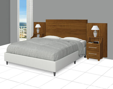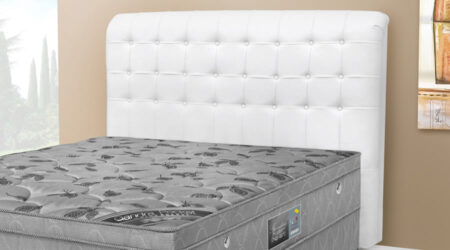 Cabeceira com criado acoplado, estilo moderno e requintado, seguindo as tendências de cores em decoração de móveis. É possível fazer combinações de cores. Mostruário disponível na loja.