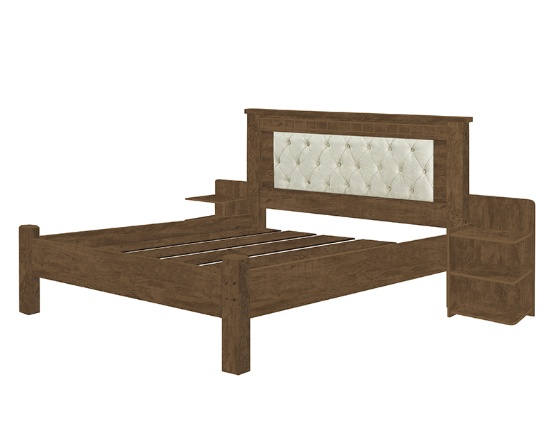 Cama casal Mega tapeçada com mesa lateral