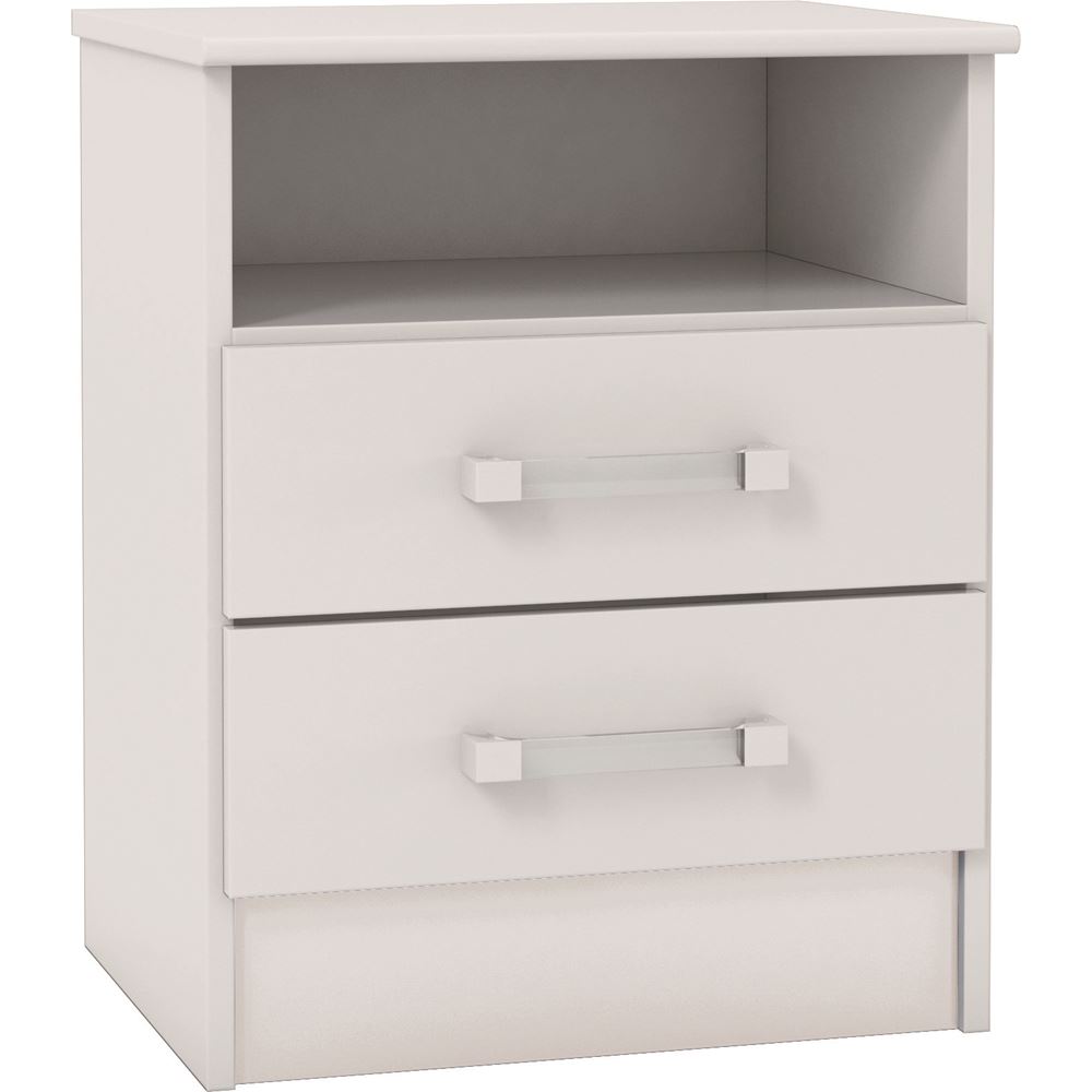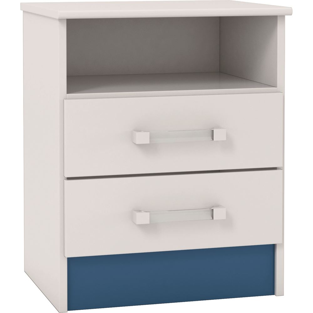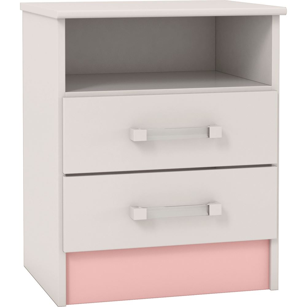 Complete seu quarto com um criado mudo. Peça essencial para apoio ao lado de sua cama. Criado com 2 gavetas, corrediça metálica e nicho. Estão disponíveis na cor branca com detalhes coloridos.