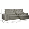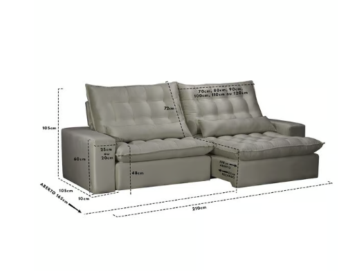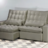 Estrutura composta em madeira de eucalipto 100% reflorestada com secagem controlada, assento retrátil em espuma D-28 soft e mais camada espuma macia, molas bonnel para sustentação em pontos de tensão, retrátil corre na canaleta perfilada com roldanas, encosto reclinável, com almofadas, catraca blindada com10 níveis de inclinação, rodízio de silicone e pés de madeira.
